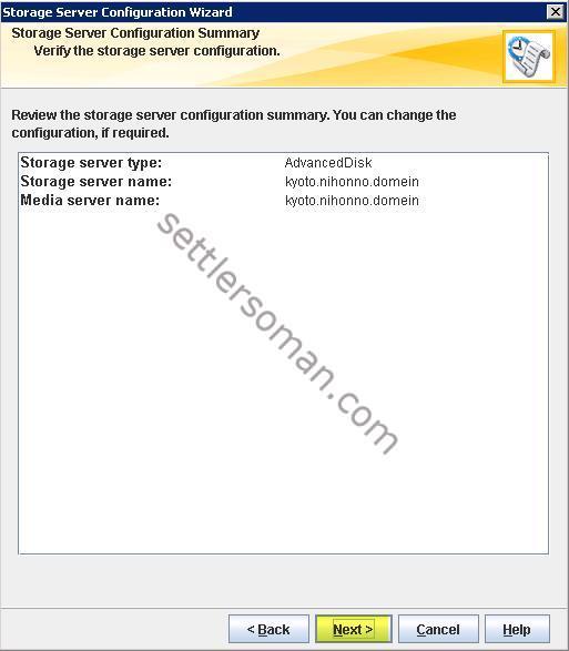 - On the Storage Server Configuration Summary page, verify the storage server configuration. Click Next.