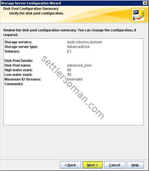 - On the Disk Pool Configuration Summary page, verify the disk pool configuration. Click Next.